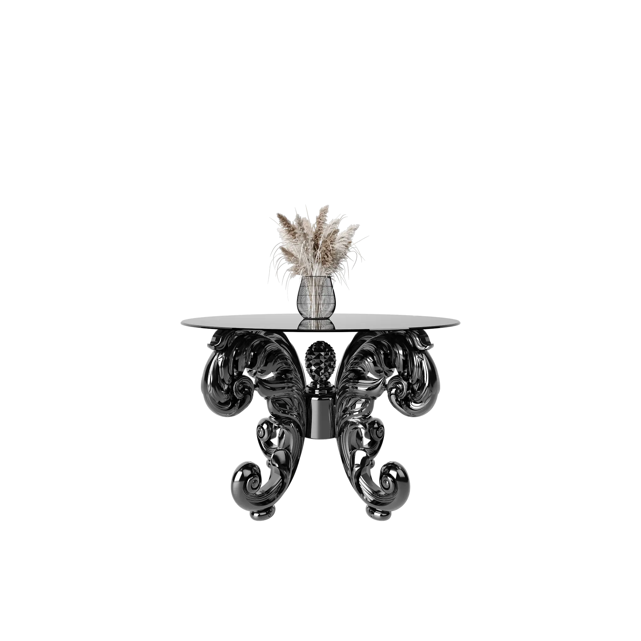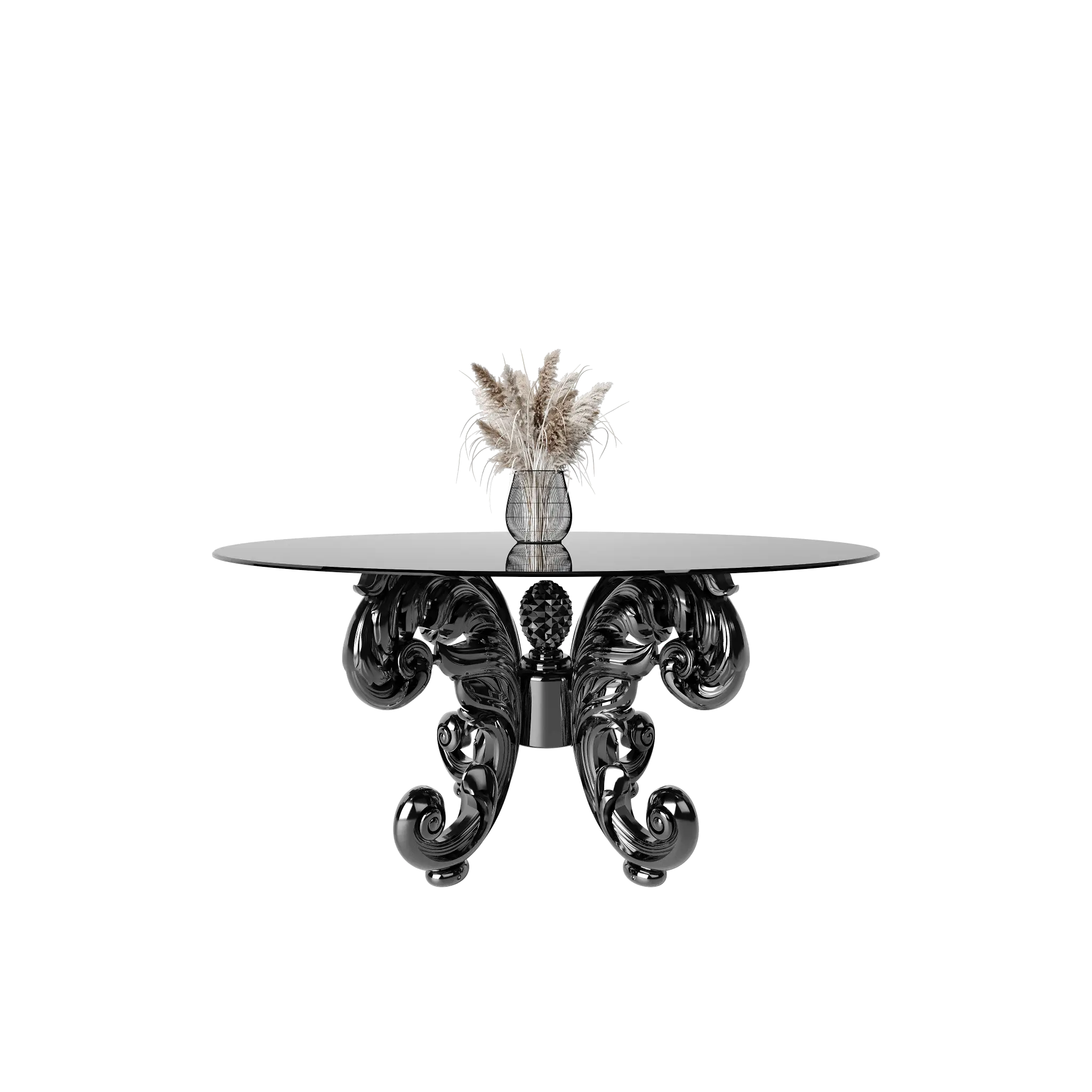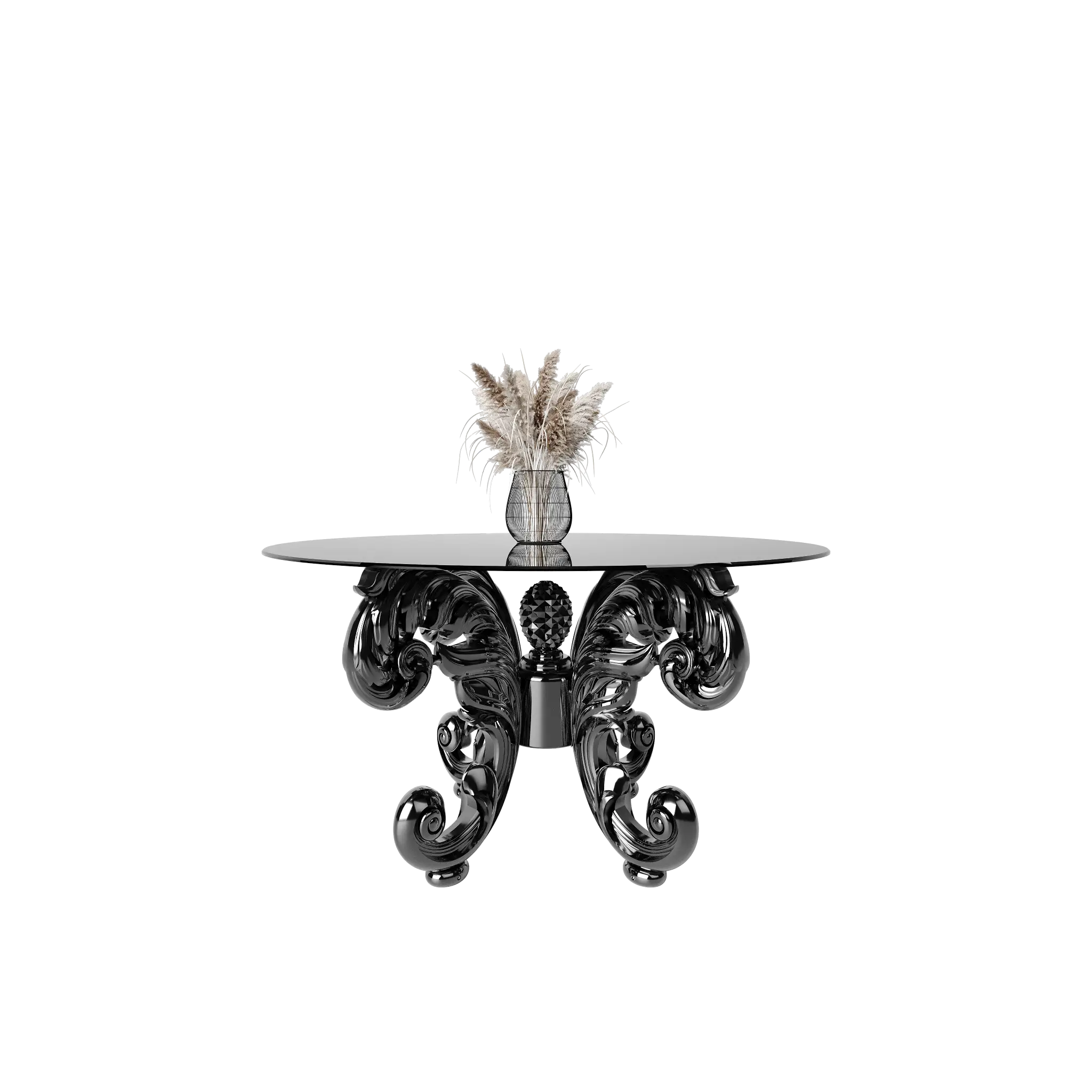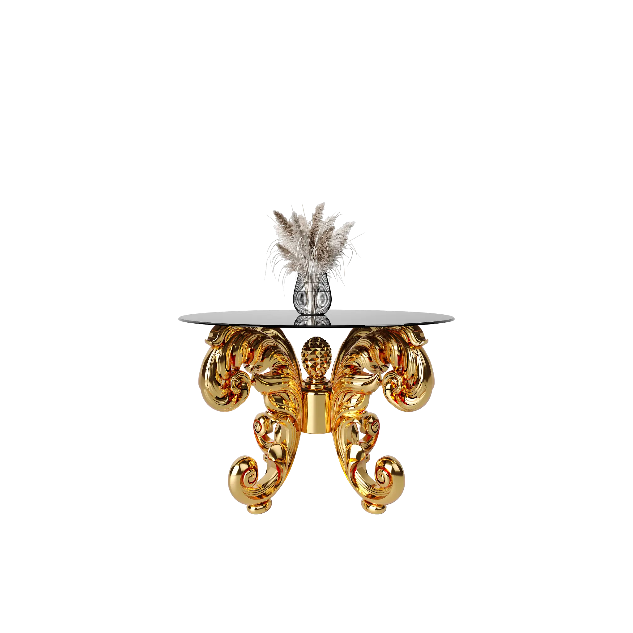 میز نیلا با فرم گرد و چهار پایهی منبتکاریشده که بهصورت نیمحلال کنار هم قرار گرفتهاند، جلوهای فاخر و چشمنواز به هر فضا میبخشد. جزئیات ظریف و هنرمندانه روی پایهها، اصالت و ظرافت کلاسیک میز را دوچندان کرده و طراحی مستحکم آن، دوام و استواری را تضمین میکند. سطح میز با شیشهای مقاوم پوشانده شده که علاوه بر زیبایی، امکان استفاده راحت و محافظت از سطح میز را فراهم میآورد. این میز انتخابی ایدهآل برای تالارها، رستورانها و فضاهای پذیرایی کلاسیک است، جایی که هر میز باید هم جلوهای خاص و هماهنگ با دکوراسیون داشته باشد و هم استحکام و کارایی را ارائه دهد. اندازه میز قابل تغییر است و تا ۱۰ نفر را بهراحتی پذیرایی میکند.